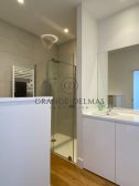 L’entrée ouvre sur la grande pièce de vie de plus de 50m² baignée de lumière grâce à une double exposition avec cuisine semi ouverte et un agréable espace bureau.