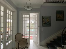 Au rez-de-chaussée, l’entrée centrale distribue un bureau côté rue et 60m² environ de magnifiques pièces de réception traversantes avec cheminée, et corniche donnant sur une grande terrasse et le jardin bien exposé avec piscine. La cuisine indépendante a également un accès sur le jardin. Wc.