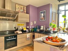Un escalier en pierre dessert le 1er étage composé d’une belle réception lumineuse et un bureau avec de très belles prestations anciennes : parquet, cheminée, mur en pierres apparentes. Côté cour, on trouve une cuisine ouverte avec salle à manger et 2eme pièce de réception très chaleureuse.