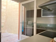 L’entrée ouvre sur la pièce de vie avec 3 grandes fenêtres et un espace cuisine aménagée ouvrant sur une agréable terrasse couverte.